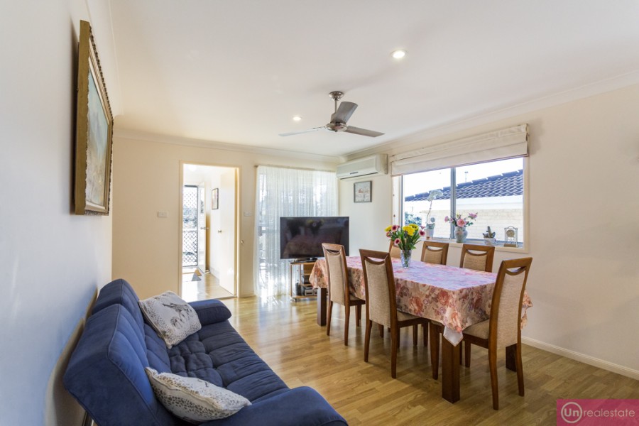 Level throughout, with a low maintenance timber-look flooring, there's a choice of living areas-an air conditioned formal lounge/dining area, as well as an air conditioned informal family room off the kitchen.