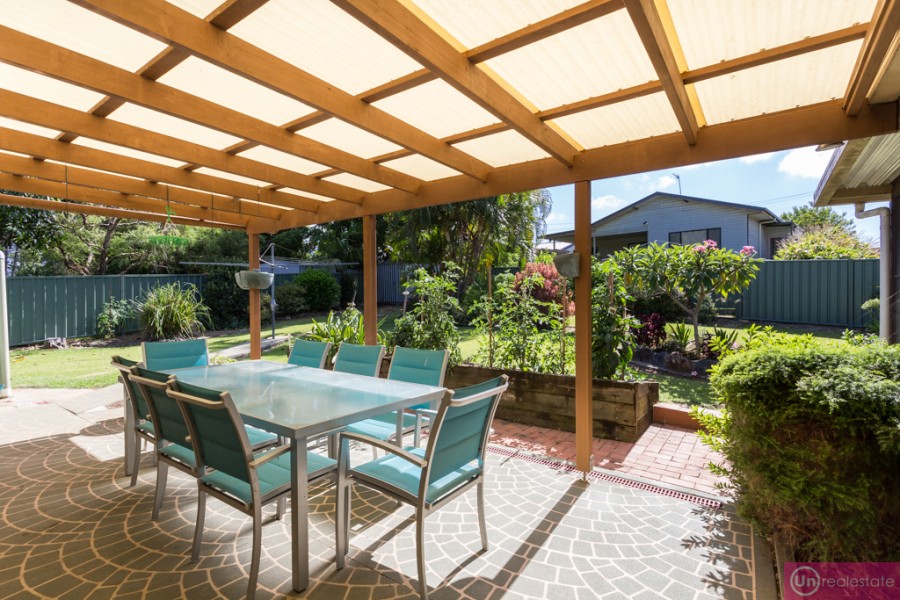 With a sunny north facing rear yard, complete with a veggie patch, the home has a double carport for easy parking and a big living zone (double garage conversion) with adjoining bathroom, ideal for the elderly or perhaps those who require disability access.