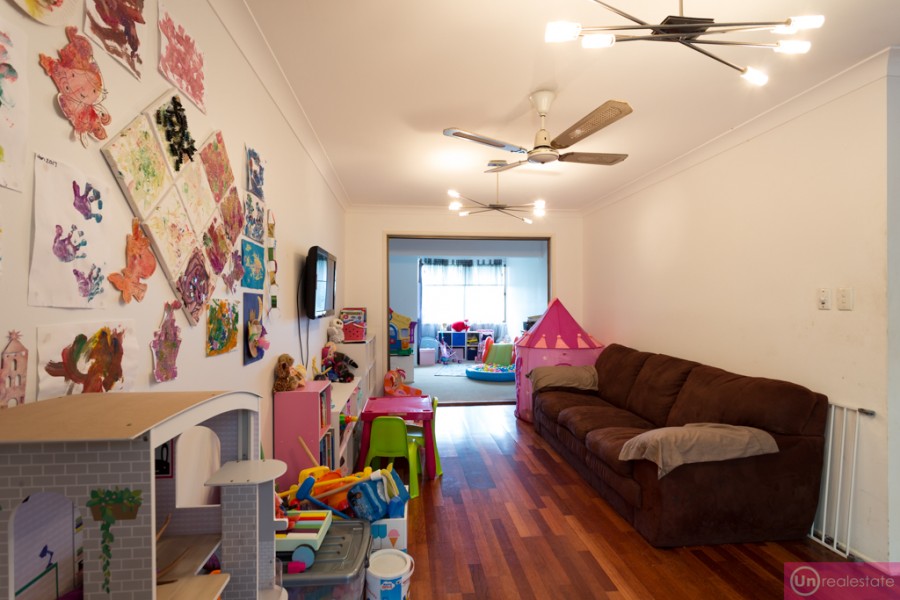 For outside entertaining at the front of the property there is a courtyard which provides a fully secured and private area for the kids to play and joins to the lovely 9.5m saltwater swimming pool. At the rear of the property there are two grassed yards securely fenced for the family pets and kids.