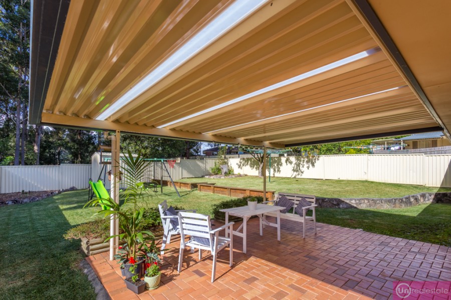 A good-sized dining room is adjacent to the kitchen, while the family room flows out to a covered patio, with a great-sized backyard for the kids and those lovely views out to the reserve.