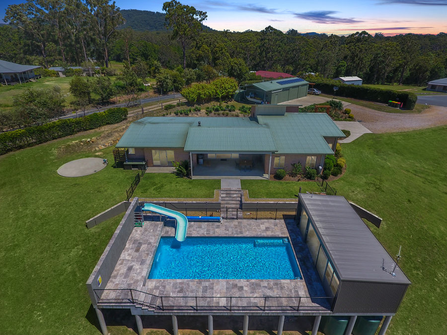 Set on a semi-rural 3,824sqm block in Woolgoolga this resort style level home with tropical gardens has lots of features to suit all the family. Boasting five bedrooms two with walk in robes, three bathrooms including two ensuites, galley...