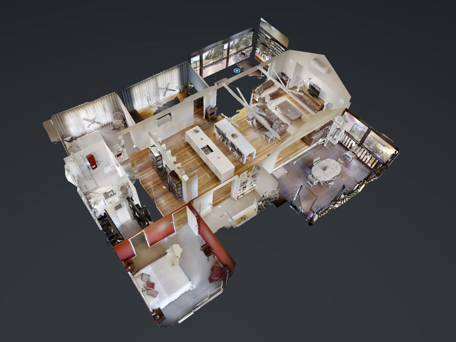 There are three bedrooms in the main residence, along with a multi-purpose room on the next, under-house level. The two bedrooms on the northern side both open out to a long timber deck, one room has the same striking floorboards as the living area, while the other has 100 per cent wool carpets. Even the curtains are bespoke, having been tailored by local company Caba's Drapery.