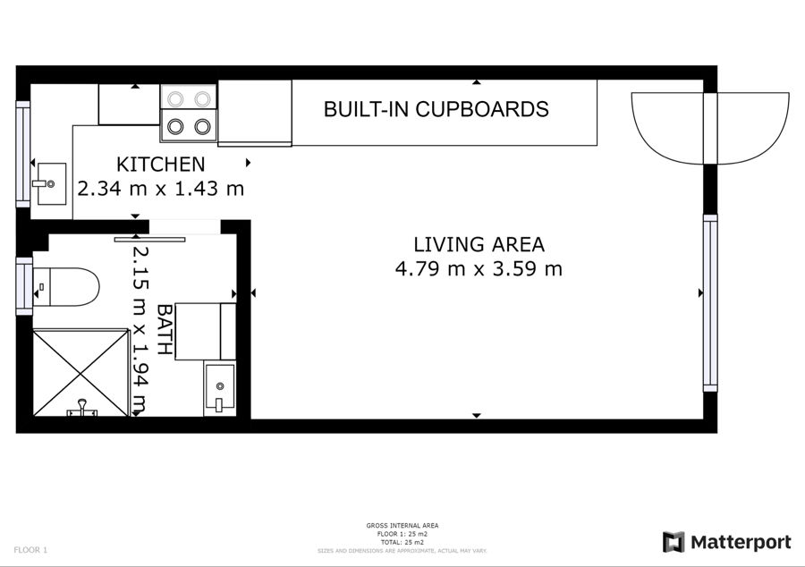 The unit is on the first floor and comprises of a lounge area, renovated bathroom with laundry, kitchen, and designated sleeping area with privacy curtain.