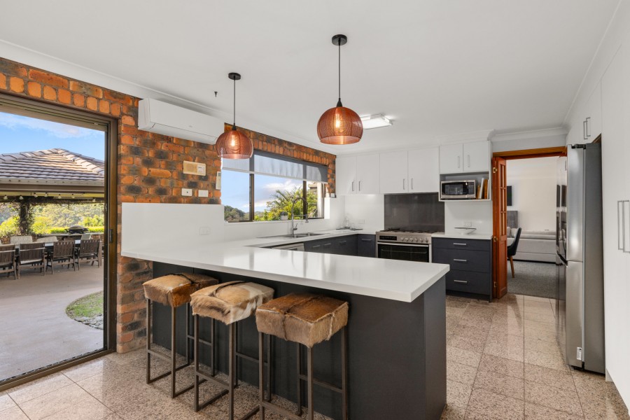 Nestled in the sought-after Boambee Valley, this home offers breathtaking valley views and ocean glimpses from the rear. Partially concealed from the street by elegant sculptured hedges, the property features convenient access via a circular driveway and ample off-street parking for multiple vehicles. Offering over 347sqm under the roof, not including garage and workshop, this is a large home.