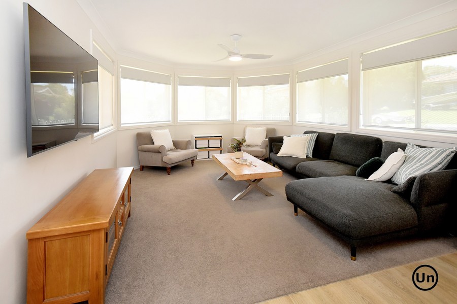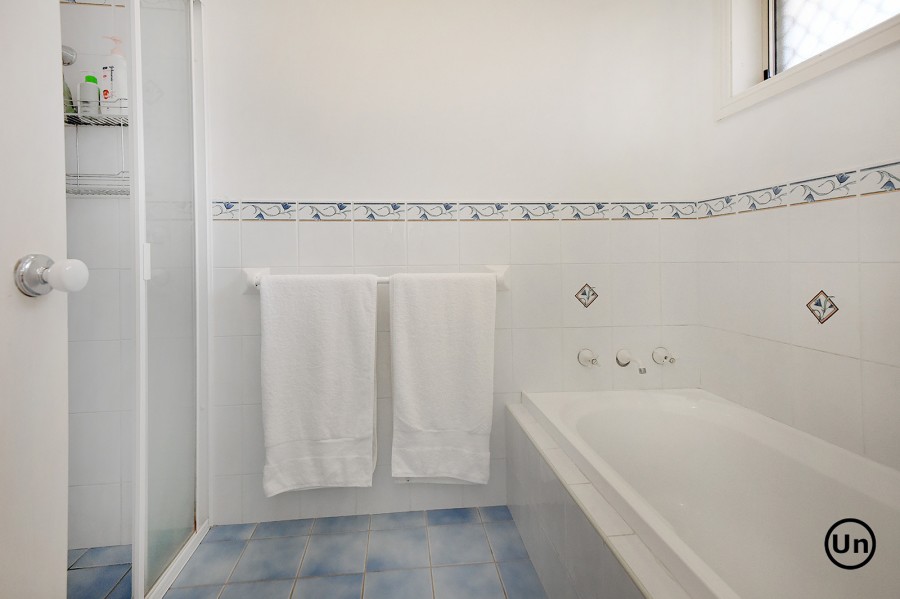 Accommodation comprises three bedrooms, all tucked away for peace and privacy off the hallway. Each bedroom includes built-in robes, carpeting, and ceiling fans for year-round comfort. The practical three-way bathroom design is a real winner, especially for busy families or when guests come to stay, providing added convenience and flexibility.