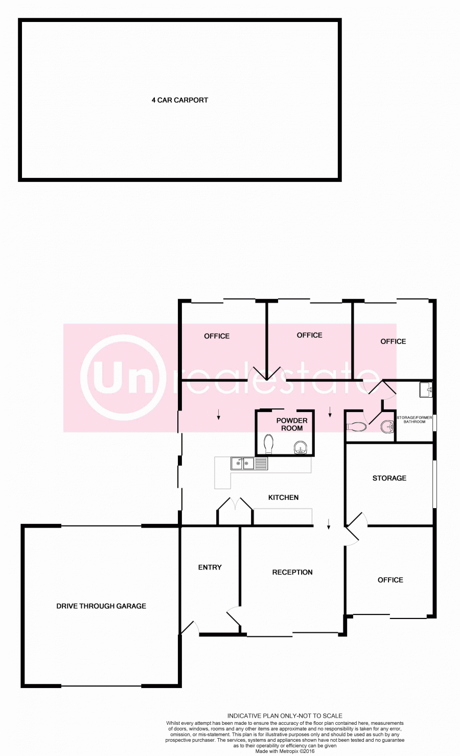 The current floorplan (approx. 175sqm under roof) allows for four private rooms, reception area, several storage areas, common area, kitchen, and two powder rooms.