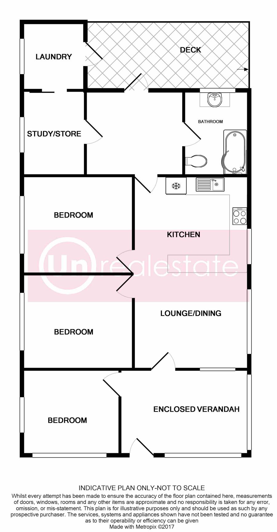 Entry is into the front enclosed sunroom, which flows through to the open planned lounge dining. Marvelous as new kitchen which provides an abundance of cabinetry and bench space. For year round comfort, the home is climate controlled with reverse cycle air-conditioning. Accommodation is provided in 3 spacious bedrooms. At the rear of the home is the bathroom and study/storeroom. To one side of the rear deck is the laundry.