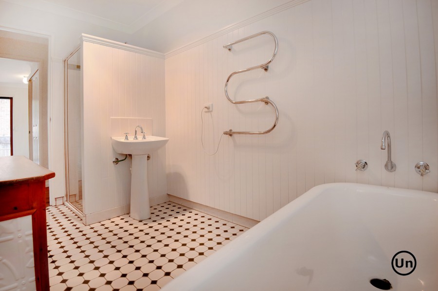 The country style bathroom, featuring an elegant claw foot bath, invites you to relax and soak away your cares. The bathroom's thoughtful layout includes quality fixtures and a separate shower, catering to both luxury and practicality. Enjoy the cosy formal lounge, complete with a fireplace and French doors opening onto the verandah, a tranquil spot for your morning cuppa or evening chats. This inviting space is perfect for chilly winter nights or simply curling up with a good book.