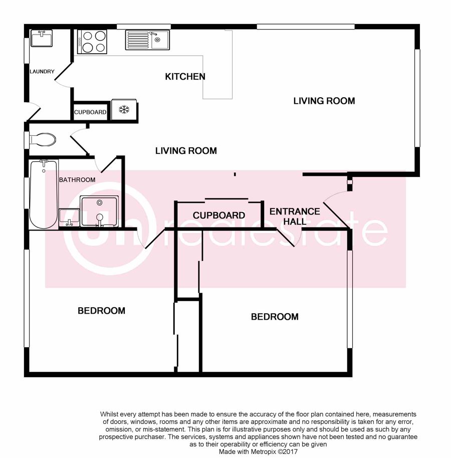 The kitchen is well equipped with loads of bench and cupboard space, and the two bedrooms, both with mirrored robes and fans, are both queen-sized.