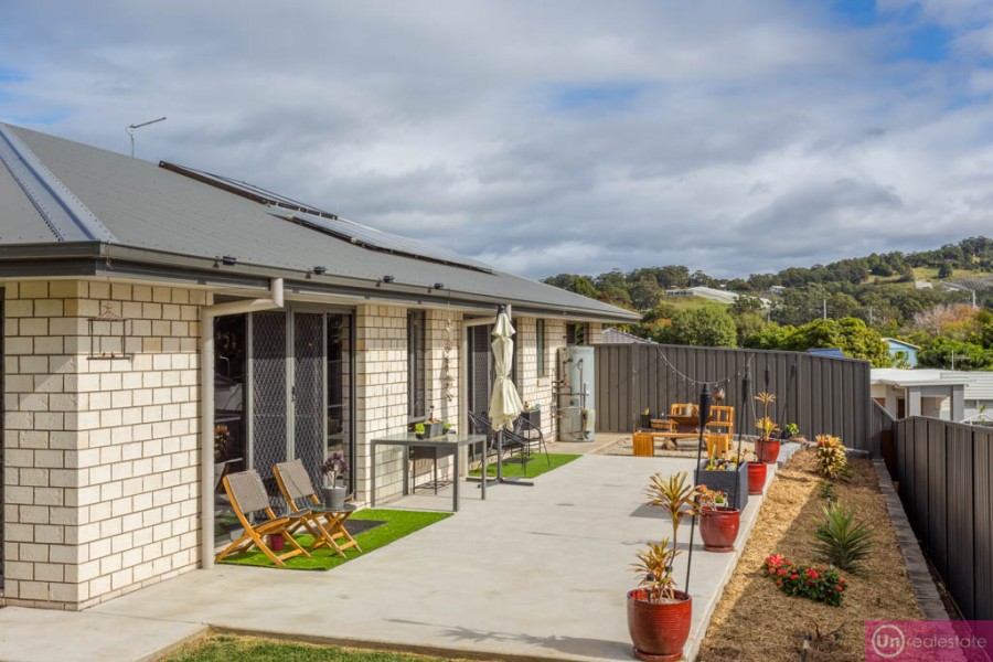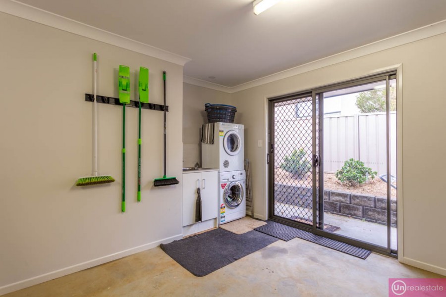 With a concrete walkway surrounding the home for easy access in all weather, another big benefit is the great-sized, level back yard, perfect for pets, kids or perhaps the veggie patch you've been wanting to put in. Complete with a tidy garden shed ready to go for your lawnmower and tools, all the hard work with retaining and laying turf has been done. The striking front garden with bush rocks and splashes of colour with low maintenance plantings has also been finished nicely.