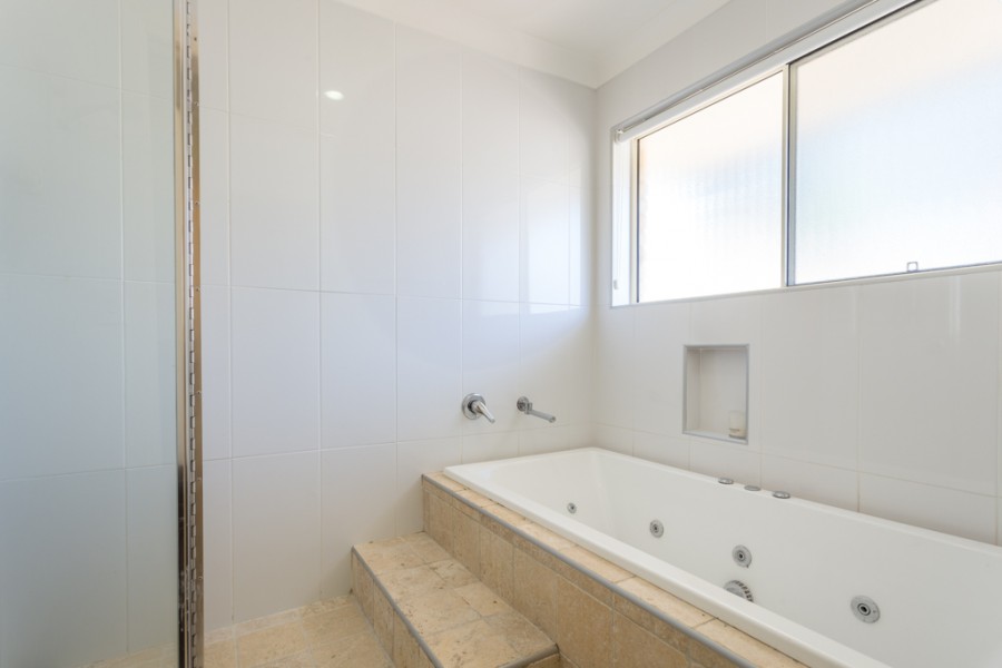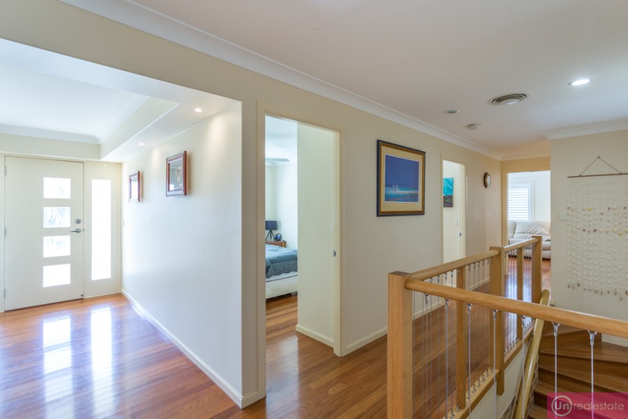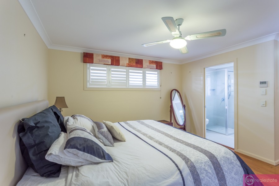 There are four bedrooms upstairs: three queen-sized bedrooms with built-ins, plus a king-sized master suite which opens via a sliding door to the entertaining area. A generous walk-in-robe and stylish ensuite completes the picture here.
