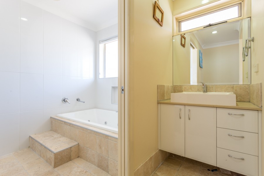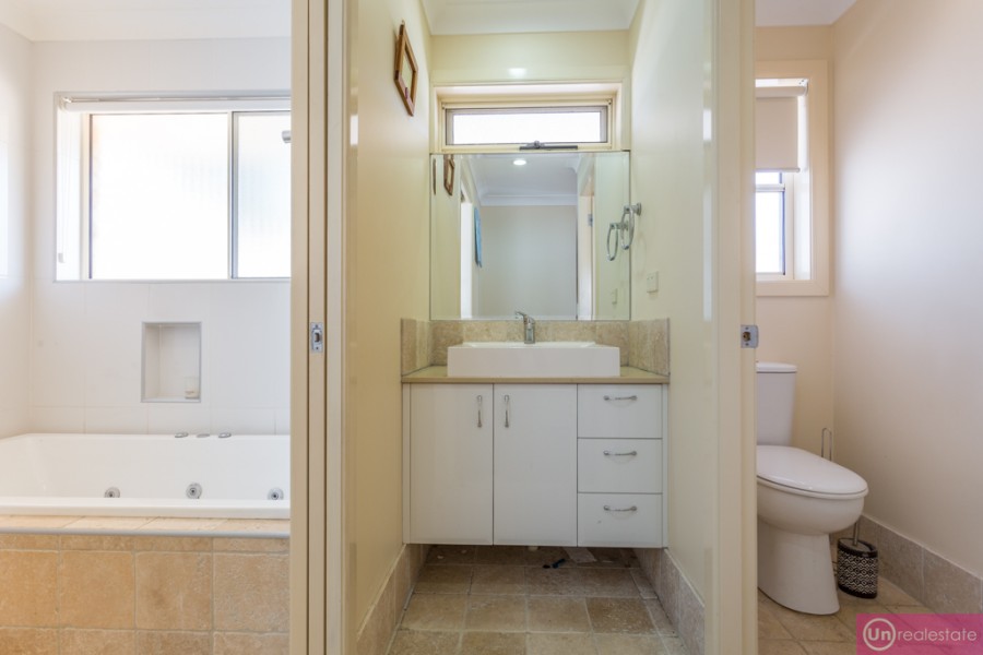 The main bathroom is a practical and stylish three-way design, with separate toilet, vanity and bathroom with shower - all offering a resort-style feel and there's also a walk-in-linen press to service all those bedrooms!