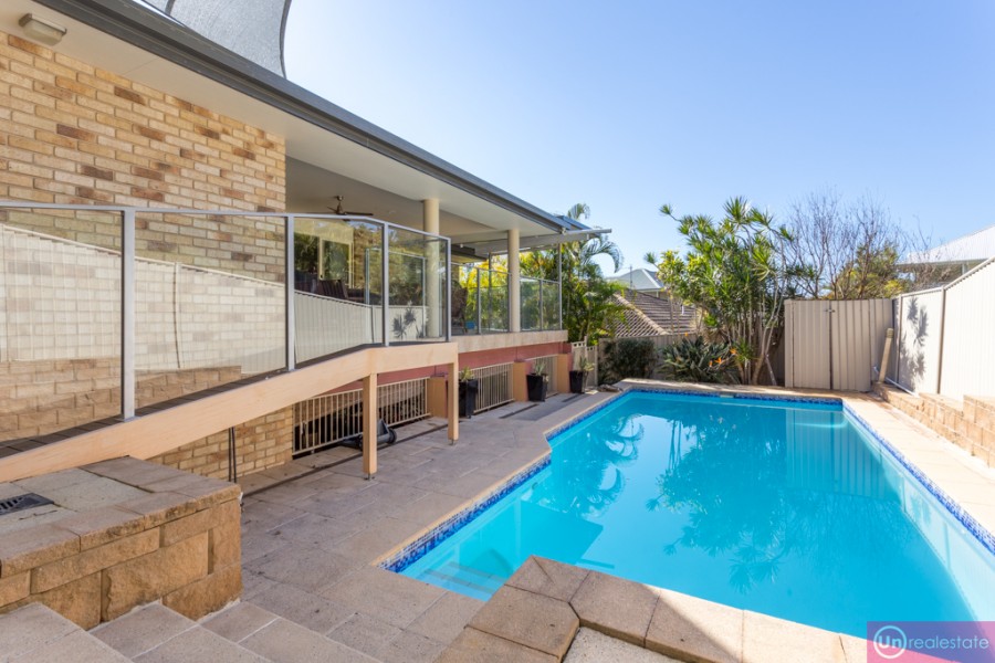 Much bigger than it appears from the street, the home offers generous proportions throughout, with gleaming polished blackwood timber floors upstairs plus two distinctive living areas - a separate formal lounge/media room, plus a very generous open plan, living/dining/kitchen area at the rear of the home, leading out to the tiled outdoor entertaining area and in-ground pool.