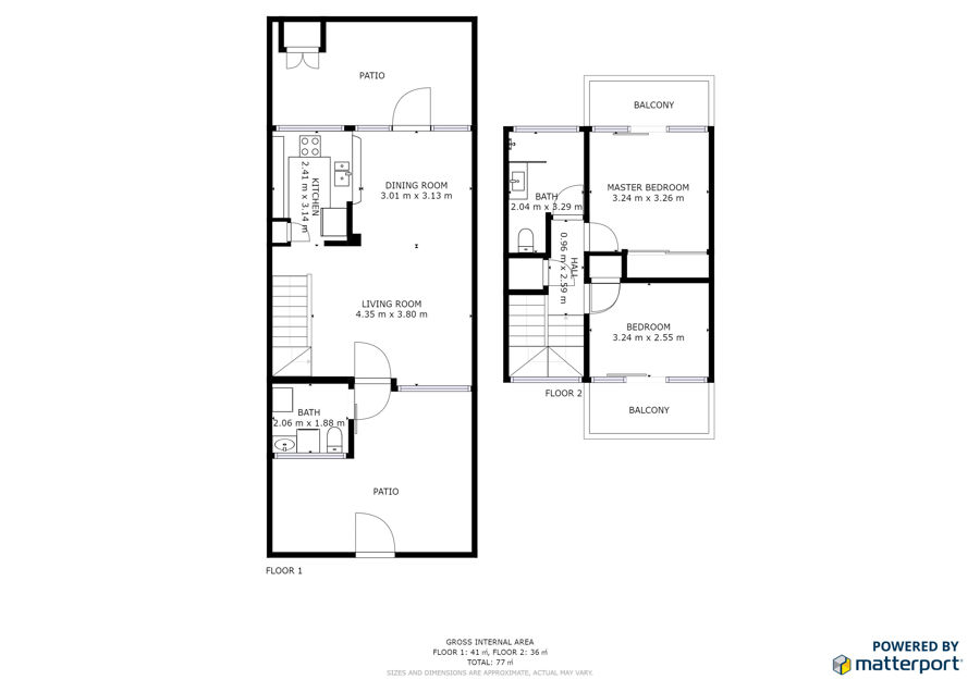 The top level of the home features two queen sized carpeted bedrooms, both with built in wardrobes, fans and balconies, along with the renovated all in one bathroom.