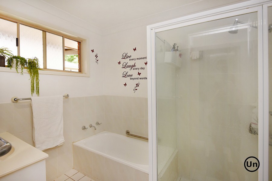 The kitchen is generously appointed with large breakfast bar, Westinghouse dishwasher, and Chef all in one four burner gas cooktop and oven, so meal preparation is a breeze. The kitchen is also complemented by a separate dining area, making entertaining easy.