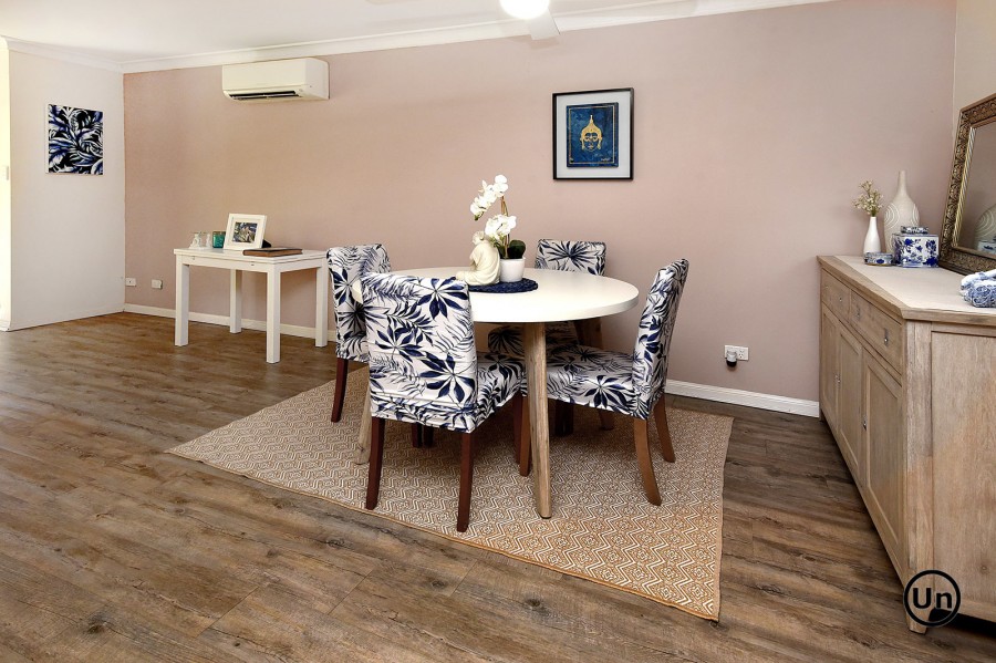 Step inside to discover stylish vinyl plank flooring and Mitsubishi air conditioning providing comfort throughout, as well as large windows fitted with vertical blinds that bathe the home in natural light.