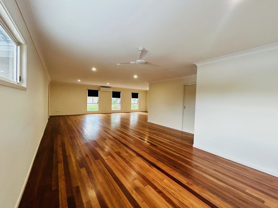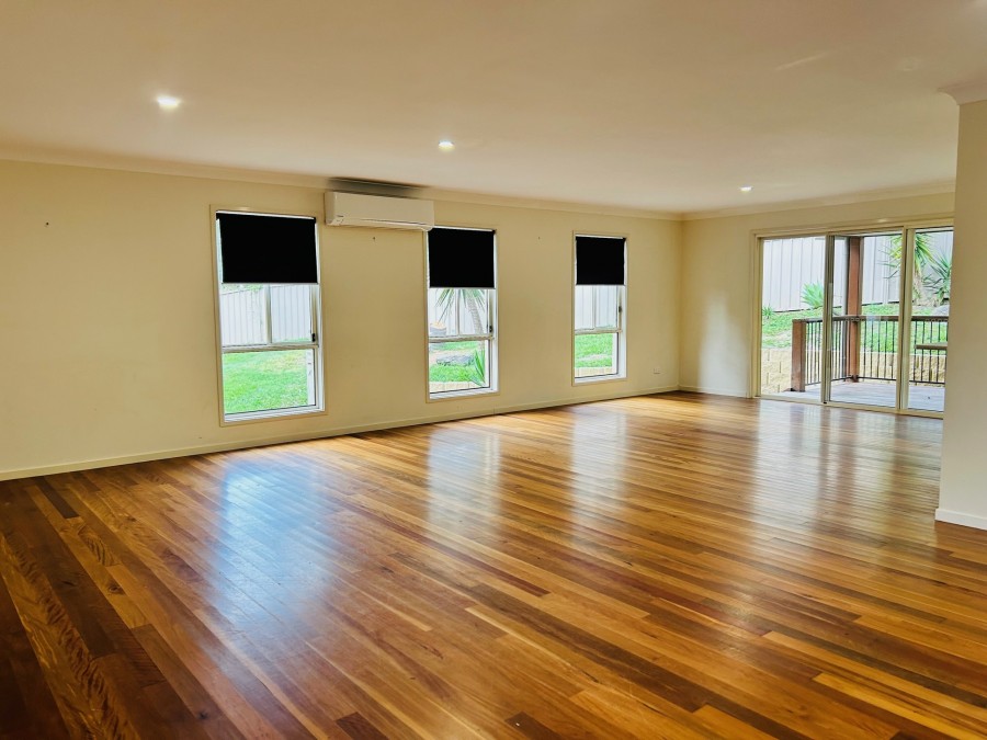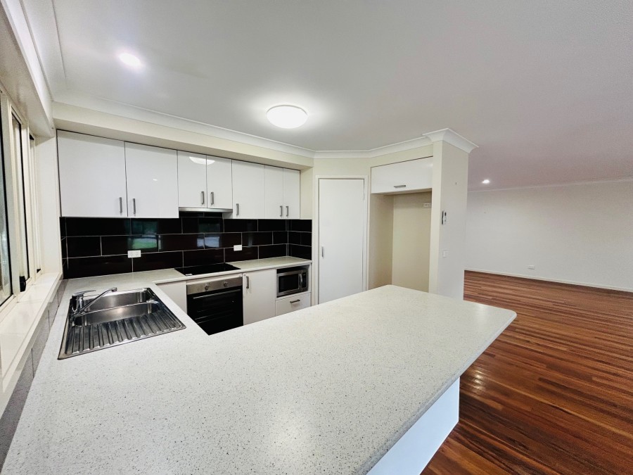 Bright and airy four-bedroom split-level family home in Bonville. Features include a modern kitchen with a dishwasher and microwave, a spacious open-plan dining and lounge area, built-in wardrobes in all bedrooms. The main bedroom has a walk-in robe and ensuite. Additional highlights are ceiling fans, air conditioning, a balcony off the kitchen and dining area for entertaining, a large rear yard with side access, and a double lock-up garage.