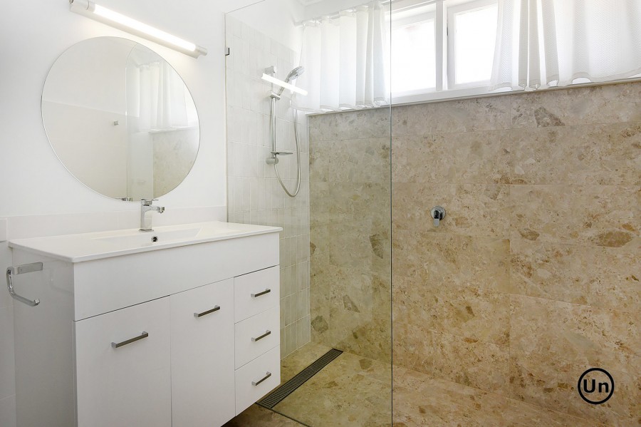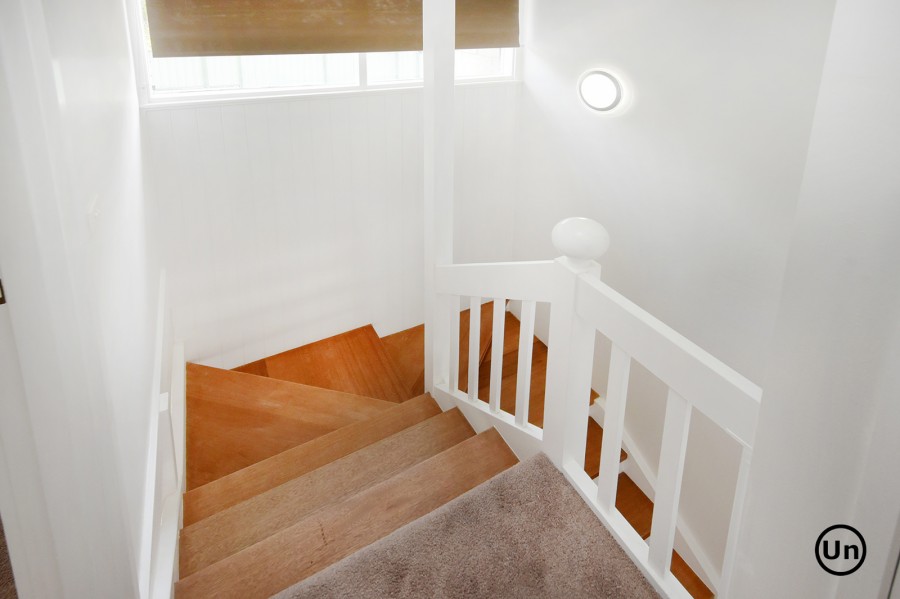 Both spacious carpeted bedrooms have built in robes, ceiling fans and balconies with awnings. Also, upstairs is the generous bathroom which has been stunningly renovated with single glass screened shower, Italian floor and wall tiles, toilet and large white vanity.
