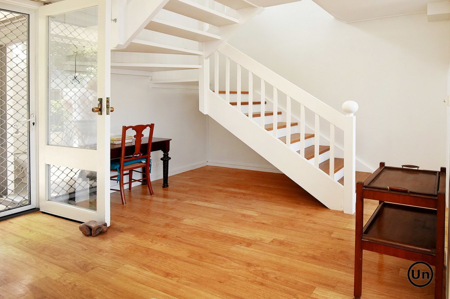 The living areas have an abundance of natural light provided by the glass windows and doors that beautifully frame both the front and rear courtyards whilst allowing the breeze to flow through the space. A study nook and extra space is supplied by the beautiful timber staircase which leads to the upstairs area where you will find the bedding accommodations.