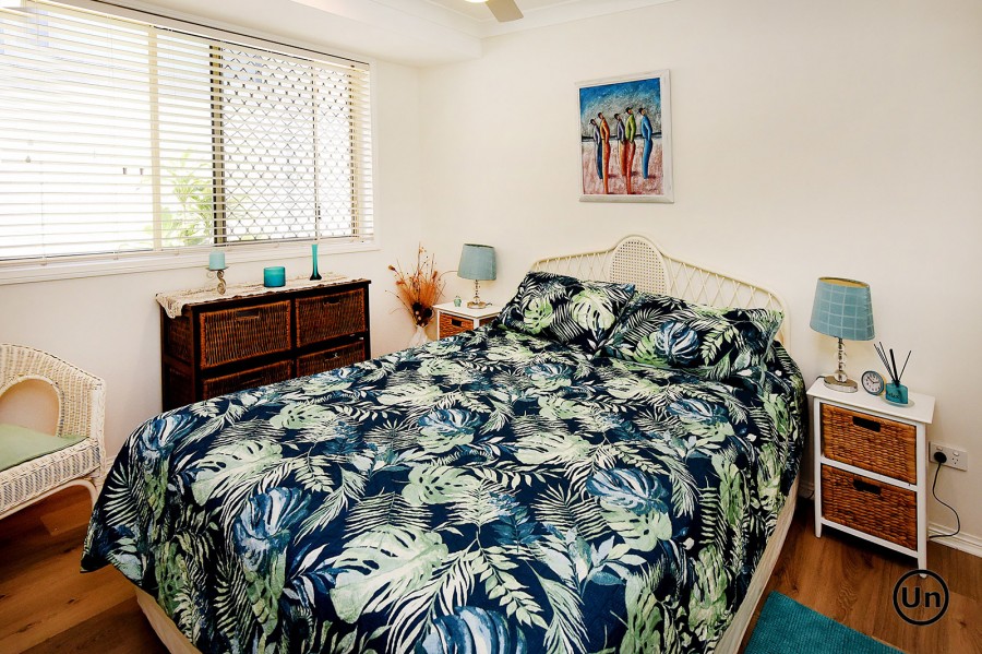 Two bedrooms off this wing feature timber-look vinyl flooring, ceiling fans, and built-in robes, perfectly positioned near the renovated bathroom, which boasts a sleek, easy-care design with a screened shower, vanity, and toilet.