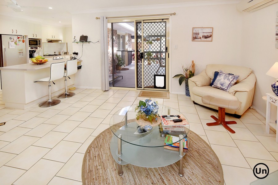The additional living area adjacent to the kitchen, complete with tiled flooring, its own Fujitsu air con and a skylight, provides a versatile space for family activities with easy access to the rear deck-ideal for entertaining guests.